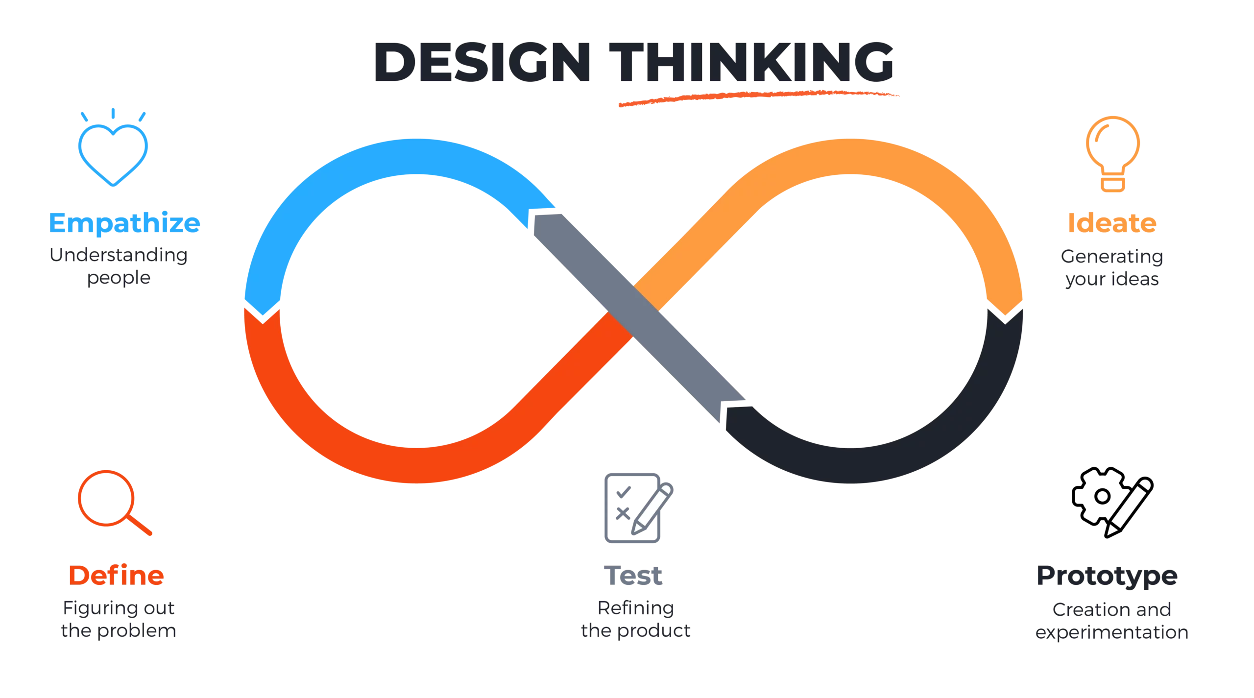 Design Thinking to metoda powszechnie stosowana w biznesie i instytucjach publicznych do kreowania innowacji. Design Thinking pozwala projektować rozwiązania, które nie tylko wyróżniają się na rynku, ale również usprawniają działanie organizacji od środka. Metoda skupia się na głębokim zrozumieniu realnych potrzeb klientów, inspiruje do ekstremalnej współpracy zespołowej i umożliwia szybkie testowanie pomysłów za pomocą prototypów.